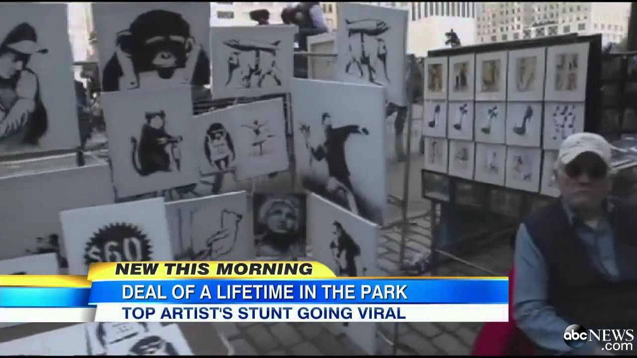 Banksy plants a video of a man selling the pieces to some very lucky art buyers... Oct 14, 2013 · original signed canvasses by british street artist banksy have been sold from a stall in new york's central park for $60 (£38) each.