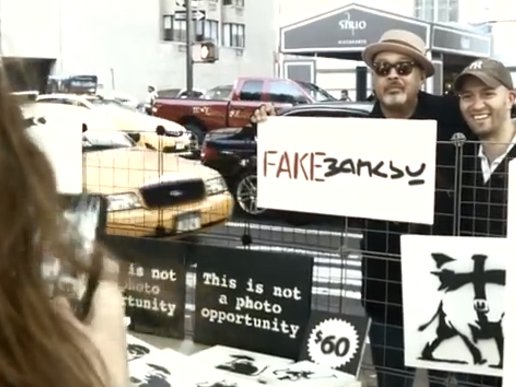 "yesterday i set up a stall in the park selling 100% authentic original signed banksy. Self described artist and professional hoaxer, somewhat like banksy himself, dave cicirelli and fellow artist lance pilgrim set up the stand in the same area.